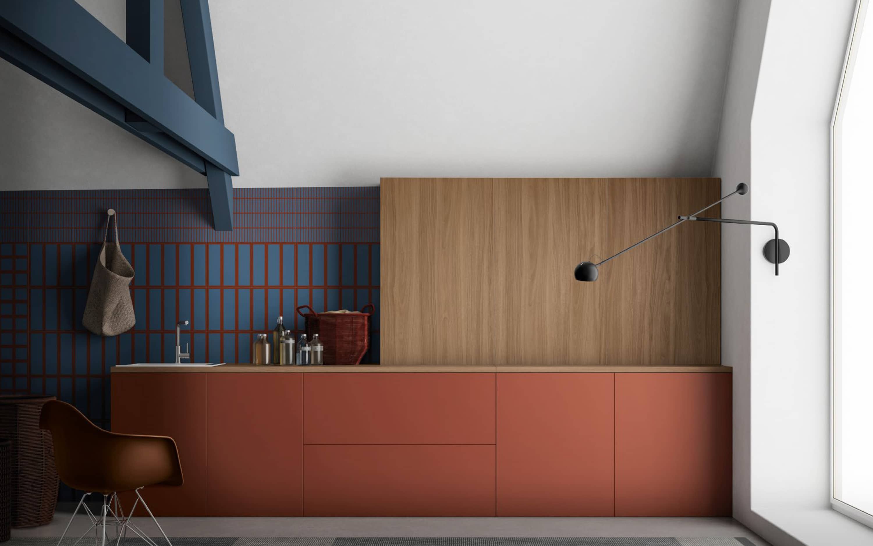 Forme geometriche, una successione fra linee e campiture di colori primari che si ispirano alle opere di Piet Mondrian. Linee ortogonali creano pattern di sublime rigore formale, un atmosfera energetica dove il colore la fa da padrone. Il tutto impreziosito da finiture di pregio come marmo, ottoni e tessili con testure geometriche. Tutto torna, tutto è come dovrebbe essere.